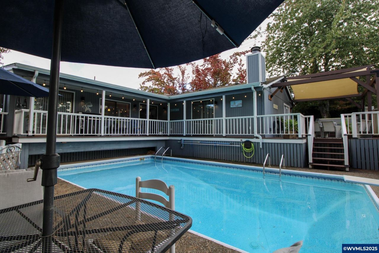 Open Beam Ceilings in Living Room, Dining Room & Master Suite. Light & Bright Vaulted Living Room with Lots of windows and gas fireplace. Bay window in Dining room. Spacious kitchen with Jenn Air Island Cooktop, lots of counter space, custom cabinets and nook. Primary Suite with gas fireplace, French doors to deck and lg hot tub, currently being used as a Family/Bonus Room. 16x32 Inground swimming pool