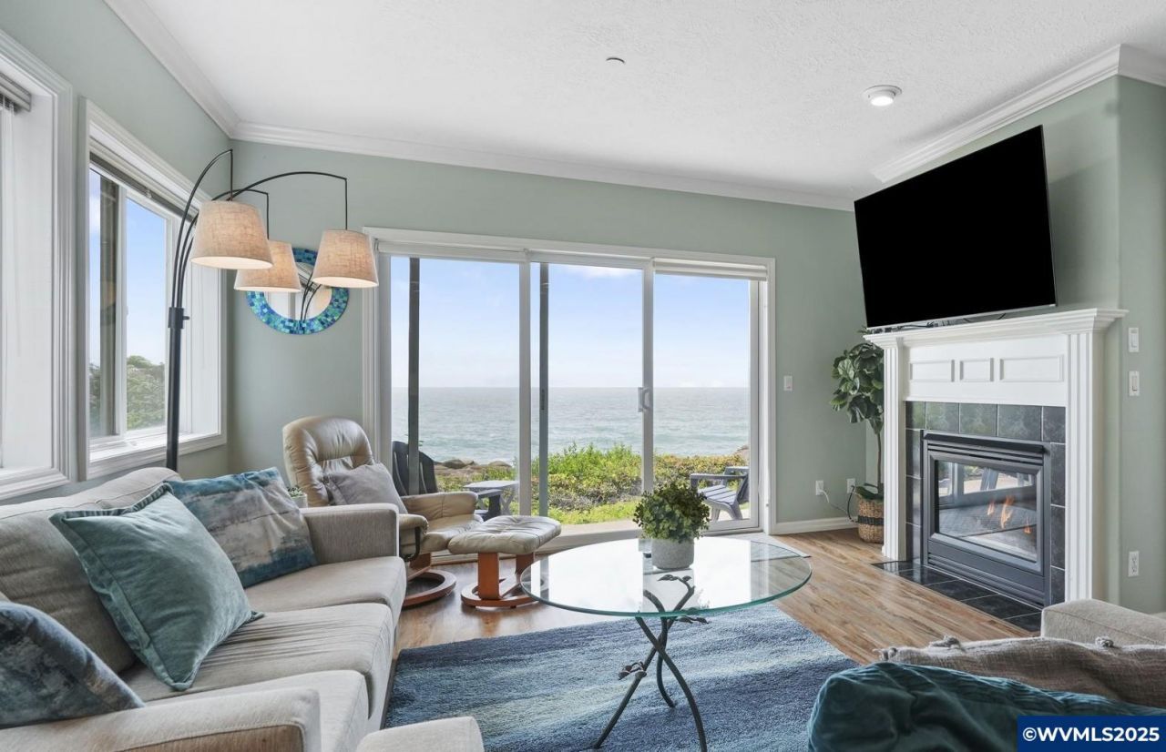First-floor corner condo w/expansive oceanfront patio just steps from crashing waves and rocky coastline views. Watch whales or sea lions from your living room, dining area, or patio. Features a cozy gas fireplace, elegant LVP floors, and a spacious layout???perfect for couples or families. Sold turnkey with everything you need to start your investment. Incl. detached garage. The Village at North Pointe offers indoor pool, hot tub, fitness center, theater & game room. C-1 zoning allows vacation rental use.