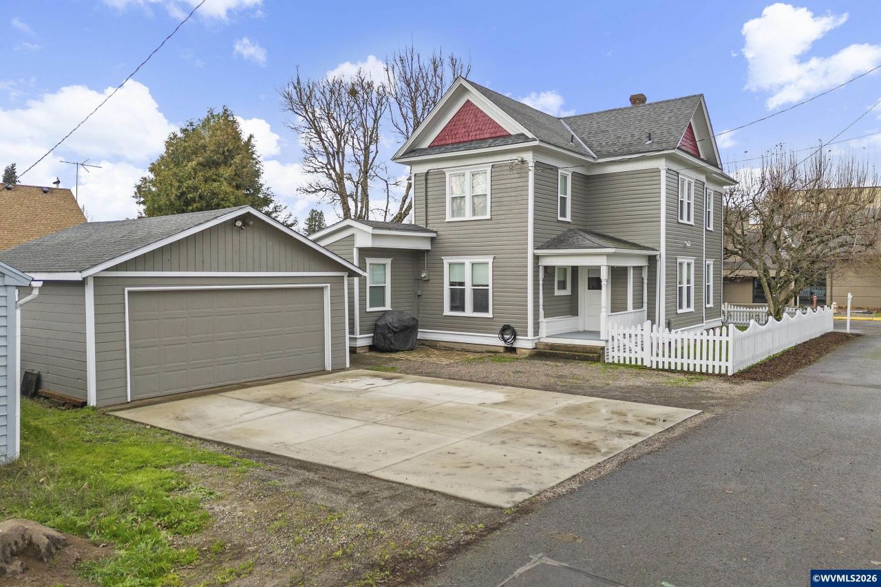 Lovely 1904 Salem Folk Victorian with original fir floors & artesian ceiling panels. New concrete driveway and exterior paint in 2025. Spacious kitchen, gas range, formal dining room, parlor & living room. A separate entrance to the parlor allows use for dual living or office space. Two modern furnaces gives upstairs & downstairs heat zones. New gas water heater. Modern foundation with earthquake straps. Plumbing/electrical were modernized. Covered porches front & back with concrete patios nearby.
