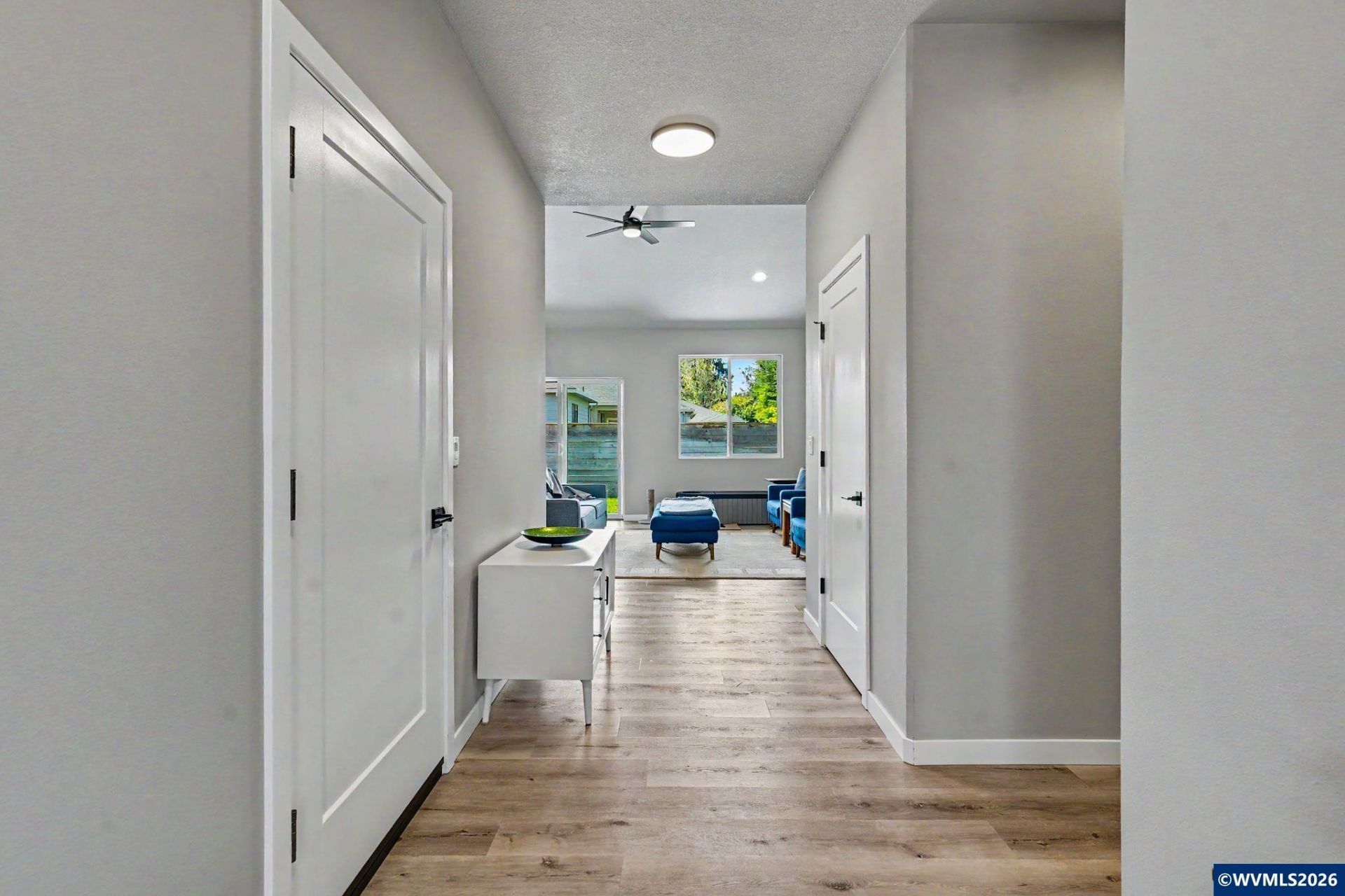 Beautiful, single level, 3 bed, 2 bath with open floor plan. Custom hardwood designer white cabinets, quartz in kitchen & baths, 9 ft ceilings, spacious primary suite with large tile shower in main bathroom, luxury vinyl plank floors, energy efficient appliances. Black SS appliances in kitchen. High Efficiency heating & cooling system. 30-year architectural roof, dedicated laundry rm, fenced backyard w/ covered patio, landscaped & UGS front and back, finished garage.