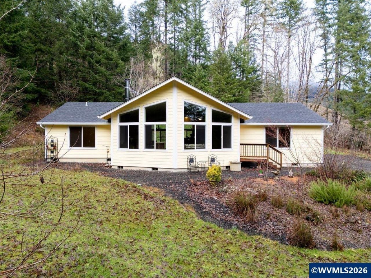 Live the dream in this 2013 home tucked away in a peaceful wooded setting across from the amazing Alsea River. Situated on 24.95 acres, the property features two ponds, marketable timber, established ATV and walking trails, and abundant wildlife often captured on trail cameras. The well-maintained home offers beautiful walnut cabinetry, a spacious kitchen island, vaulted ceilings, and large windows with stunning forest views. Exceptional privacy and modern comfort in a majestic natural setting. experience the essence of Northwest living with unmatched privacy, sweeping natural beauty, and recreation at your doorstep throughout the year. This expansive acreage invites you to explore miles of trails, enjoy peaceful afternoons by the ponds, or simply relax in the quiet embrace of the surrounding landscape. With the river nearby, the setting feels both serene and invigorating.Whether envisioned as a full-time residence or a secluded getaway, the property offers a rare blend of comfort, usable land, and an exceptional location. A decommissioned 1930s cabin currently serves as storage yet holds exciting potential for restoration and renewed purpose. To view alternate Virtual Tour, please go to 1