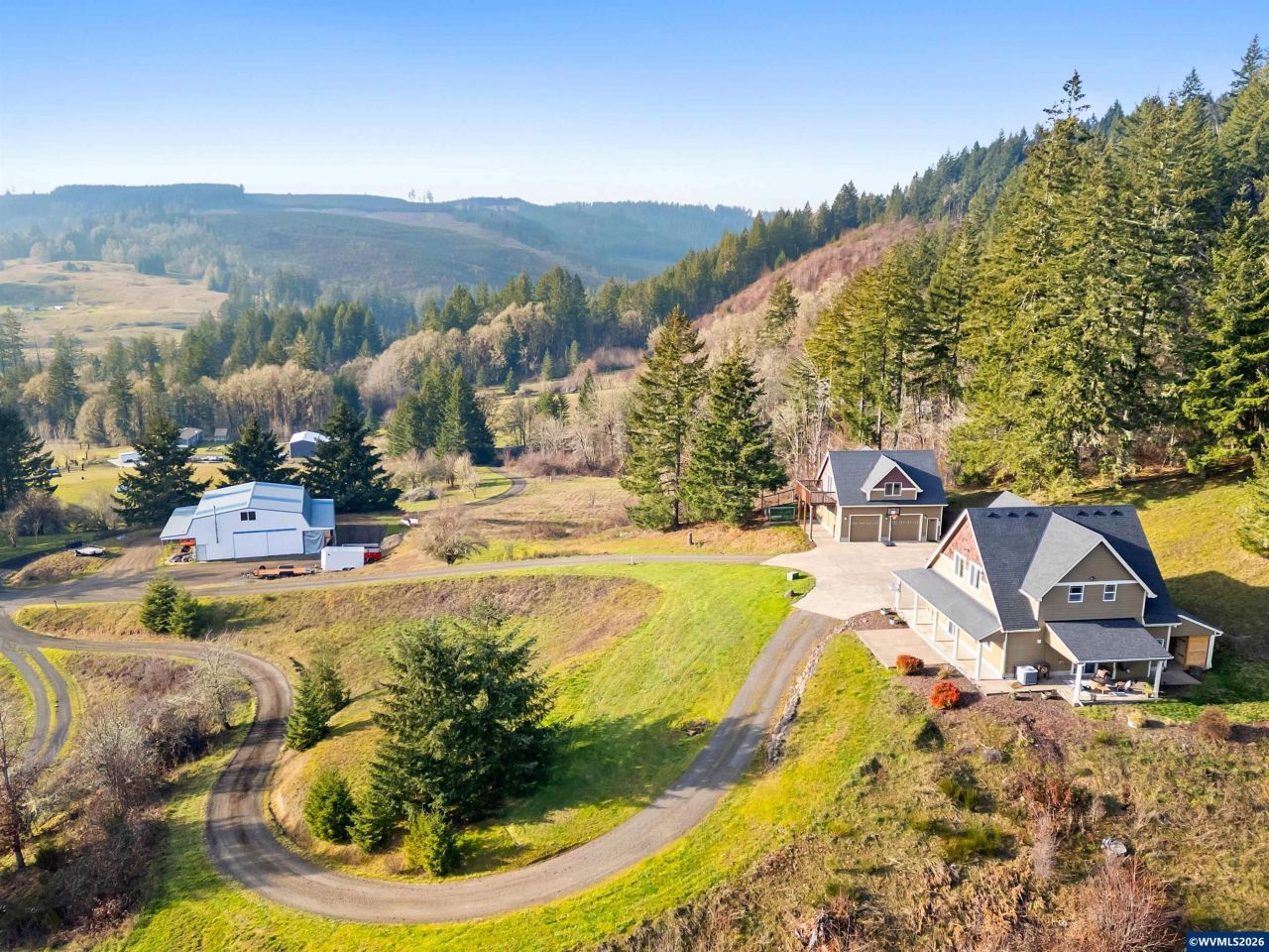 Custom built in 2007, this private 25-acre Willamina estate offers refined craftsmanship, exceptional amenities, and sweeping territorial views. The property features an oversized detached garage with finished bonus level, two well-appointed shops including a heated shop with game room & a second 30x30 shop. The 2,300+ sq ft custom home includes 4 bedrooms, 2.5 baths, a well-designed kitchen, oversized utility room, spa-like primary suite, private sauna, & covered patios. Trails, wildlife, orchard, sheshed.