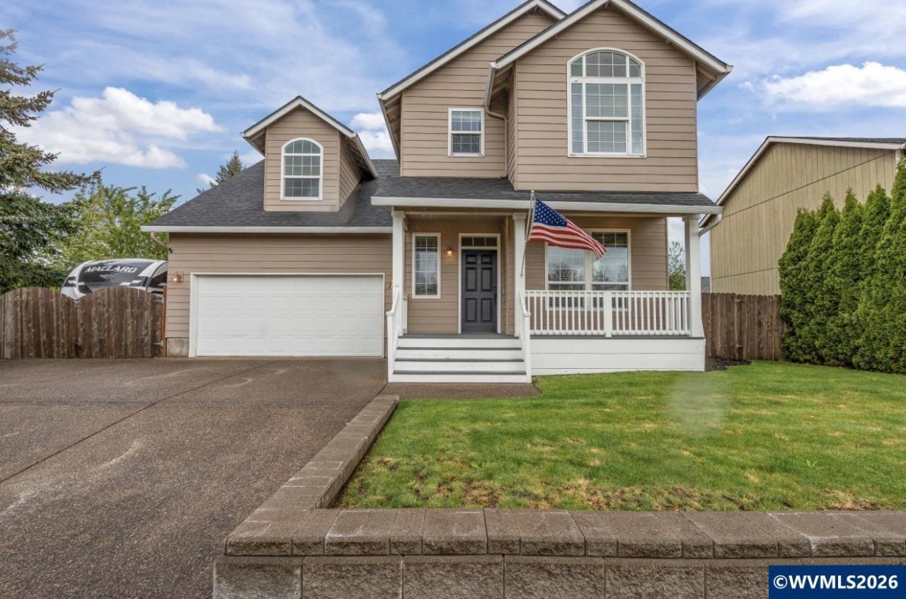 BEAUTIFULLY maintained home on a corner lot. Located close to Western Oregon. 3BR, 2.5 bath, New roof in 2020! Lovely hardwood floors on the main level. Gas fireplace. Light & bright kitchen with a large pantry. Huge bonus room upstairs with vaulted ceilings and large front windows. Primary suite with tile shower and walk in closet. Lots of storage throughout the home. Covered front porch. Concrete RV pad with hookups & waste disposal. Backyard is fully fenced with decking & garden boxes. Gas furnace & AC.
