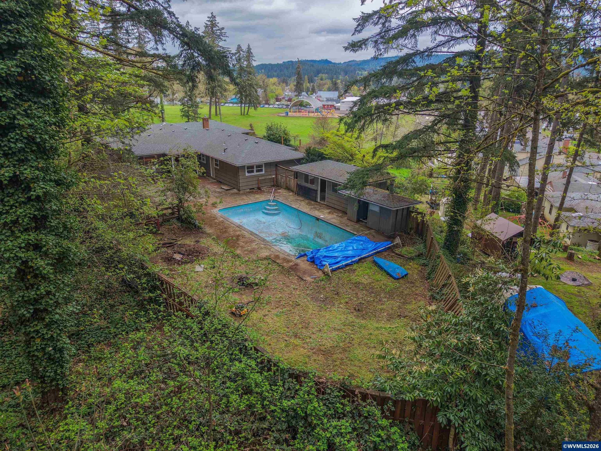 Spacious single-level home tucked away at the end of the road in Sweet Home. Situated on 1.5 acres, this 3,239 sq ft property offers privacy, space, and versatility. Features include 4 bedrooms (previous garage was converted into 5th bedroom), 2 bathrooms, a large kitchen with ample storage, and both a living room and family room for great separation of space. Outdoors, enjoy an in-ground pool with a pool house, plus a deck and patio ideal for entertaining. Property is on public water with irrigation well. The flat area next to the home provides plenty of room for RV parking, a future shop, or potential additional dwelling (buyer to verify). Treed setting adds privacy and a peaceful feel. New roof installed in 2020. Rare opportunity with space, privacy, and flexibility.