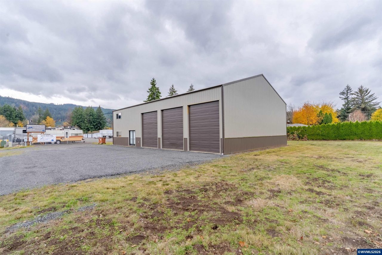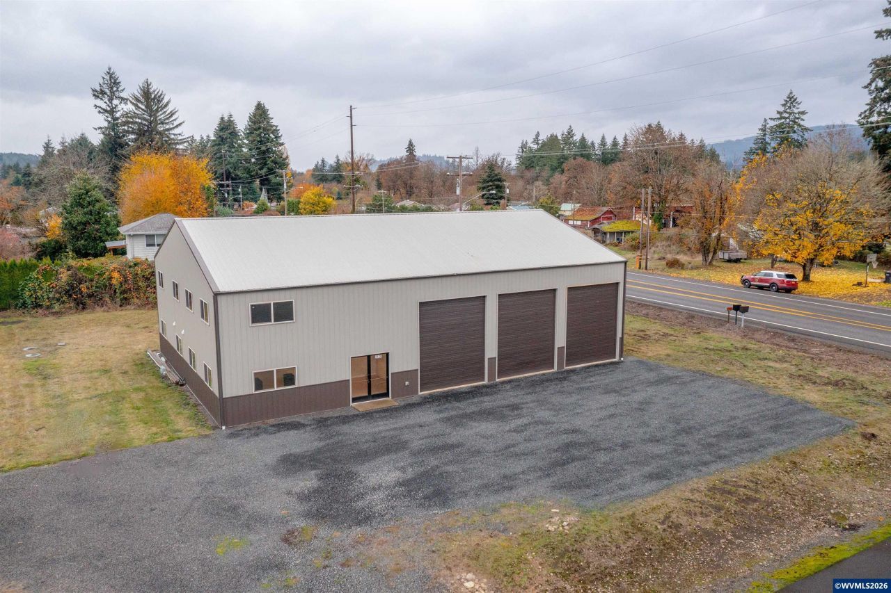 This 4,704 square foot building was built in 2019 with space for future buildout. The shop features 2,016ft with three 16ft shop doors, 48ft deep, approx 18ft of internal clear height, concrete floors, 220 power, and fixture ready half bath. The office has 1,344sf with 2 offices, a large conference room, a break room, bathroom, and large lobby for reception or additional work/retail space. Above the office is a mirrored floorpan for additional storage or office buildout.