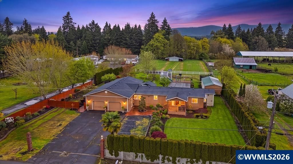 2.5 ACRES + SHOP + ENTERTAINING SETUP IN NEWBERG! Hard to find small acreage just outside Newberg with space, setup, and flexibility buyers want. 3 bed + 3.5 bath manufactured home with 2 bonus rooms w/ closets. Features SS appliances, tile backsplash, vaulted ceilings, fans, AC, new HVAC (2025), tile floors, and double-pane windows. Primary has walk-in closet + private bath. Enjoy play area, powered workshop, and 32x24 covered patio w/ bar. 16x32 shop + oversized garage. Close to shopping & dining!