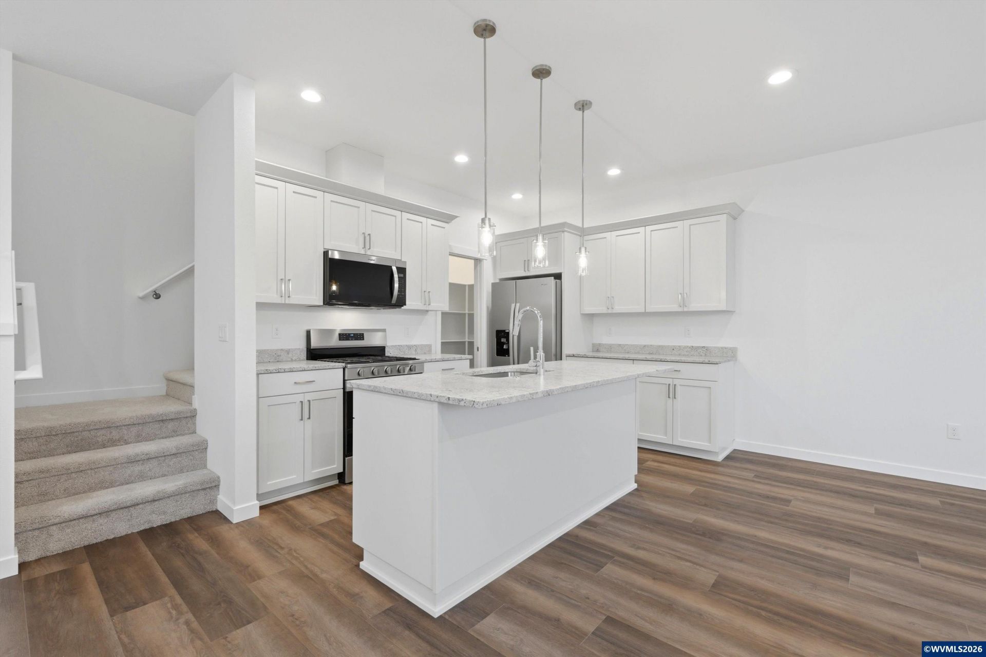 Inviting 3-bedroom, 2.5-bath townhome in Corvallis features a light & bright great room w/ elec. fireplace and sliding door to private patio. Enjoy a fully fenced, landscaped backyard perfect for relaxing or entertaining. The kitchen flows seamlessly into the living area, and a single-car garage adds convenience. Upstairs, the spacious primary suite offers a walk-in closet w/ ensuite bath, dual sinks and standing shower. With modern finishes and a thoughtful layout, this home blends both style and function. Completed Construction. Seller offering $$$ Spring Savings!