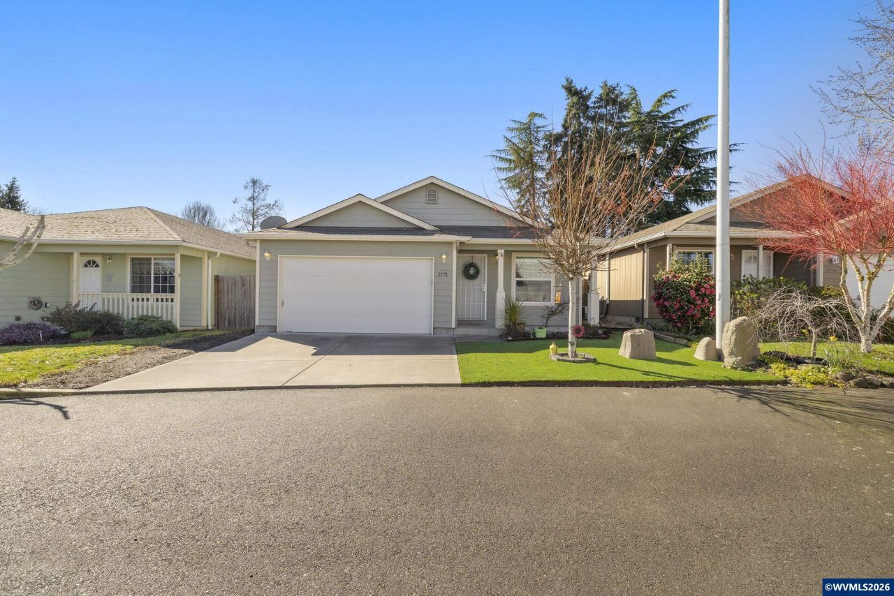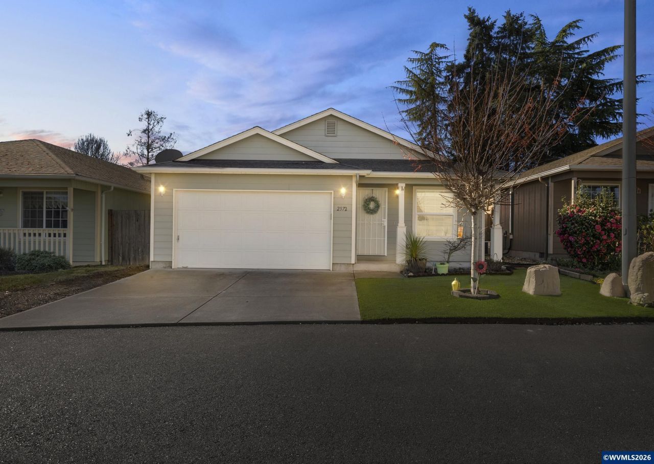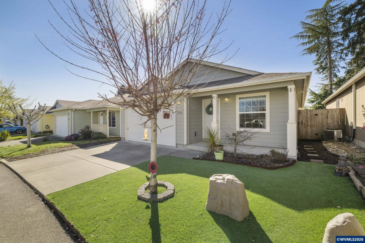 Built in 2012, this inviting single-level home offers 3 bedrooms and 2 bathrooms with vaulted ceilings in the living room and primary bedroom that make the space feel larger than expected. Enjoy updated flooring, knotty alder kitchen cabinets, a low-maintenance turf lawn, fenced yard, and a covered back patio perfect for year-round outdoor living. Tucked back inside a small community of similar homes makes the setting feel quiet and private.