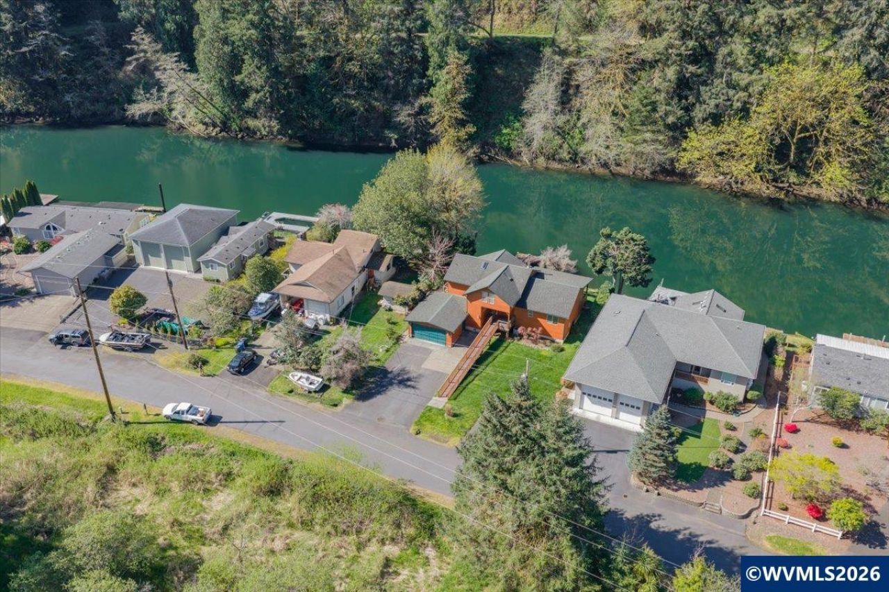 Enjoy the Alsea River frontage views from your gorgeous river house. Built in 2004, the great room design features 2 stories of windows and river rock fireplace. Live edge bar in the kitchen space. Tasteful use of wood to makes this home have cabin vibes. Two full bedrooms with adjoining bathrooms on the main level. Upstairs 3rd bedroom is a loft with a full bathroom. Complete with a boat dock. Some accessibility features-main level bedrooms with bathrooms, entryway ramp.
