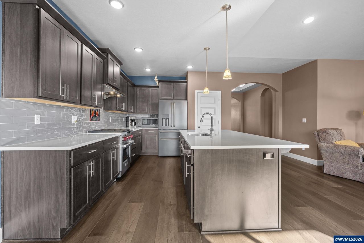 Beautifully designed smoke free residence features 4 spacious bedrooms & 2 bathrooms, perfect for comfortable living. Find convenience of a 3-car garage and a thoughtfully crafted layout that combines style and functionality. Key features include: Wolf Range, Cafe Refrigerator, Cafe Dishwasher, Premium LPV flooring throughout, expansive 13,770 sq ft outdoor living area that is a retreat w/pergolas, gazebos, koi pond, & extra tree lined area for kids or pets. Some pots & statues are negotiable.