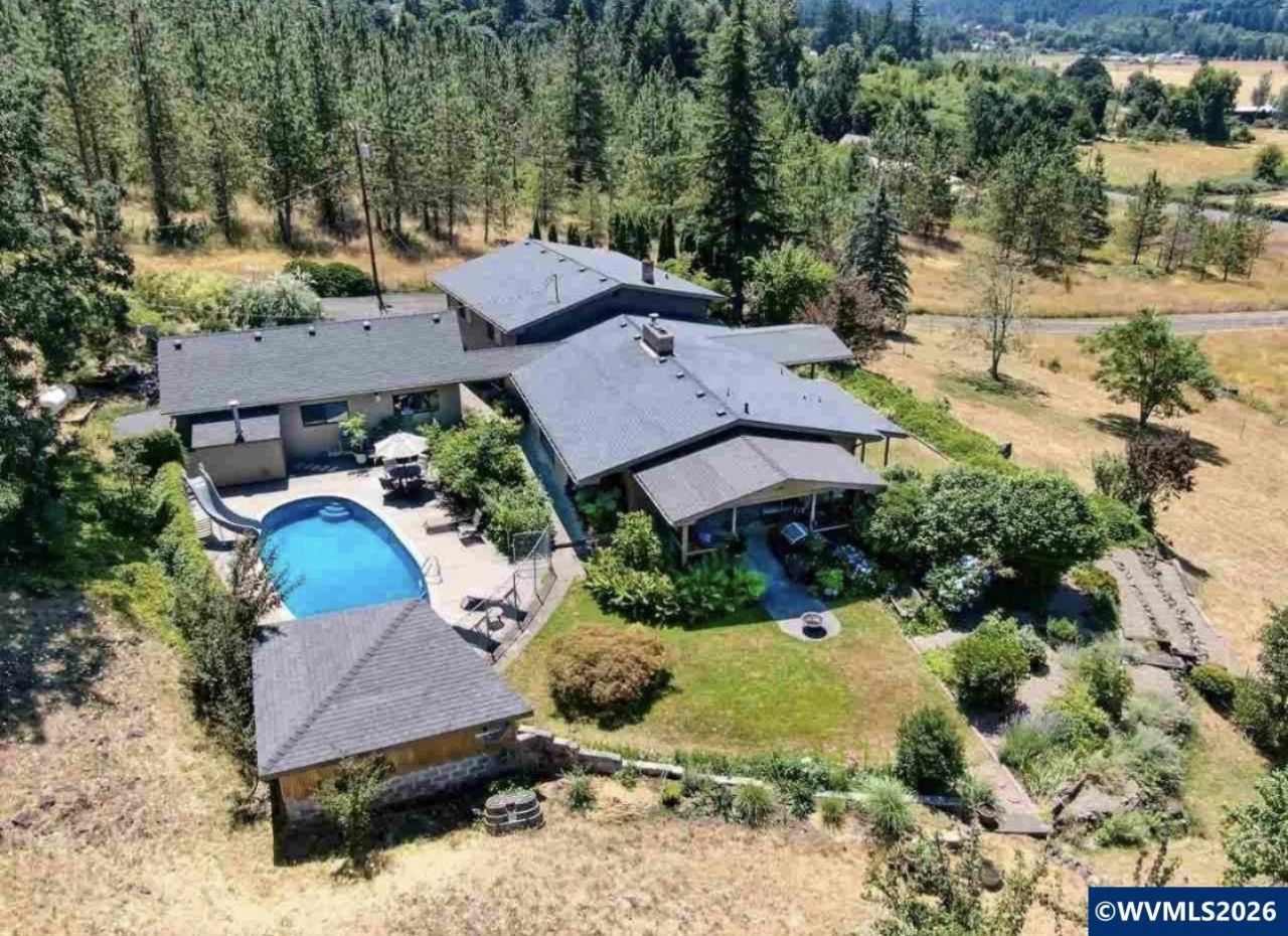 Breathtaking view! This stunning 3418sf home, situated on acreage overlooking the surrounding hills, is a must-see luxury property less than 10 min from town. Quality-built & well-maintained, this stately home offers upscale upgrades, 4 spacious bedrooms including a large, stunning primary suite, 2-1/2 baths, living & family rooms, fireplace, heat pump, bonus room, large craft/hobby room, ample storage, in-ground pool, pool house/garden shed, 2-car garage with storage bay, metal storage building, & barn!