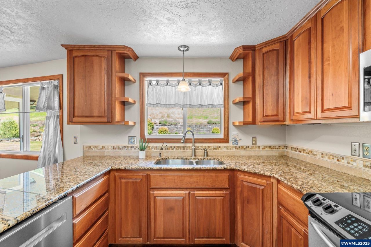 Tucked beside Mallard Creek Golf Course and surrounded by mountain views, this 3-bedroom, 2-bath home sits on 5.35 acres offering both comfort and privacy. This home offers custom cherry wood cabinetry and granite countertops in a single-level layout. Enjoy the convenience of two shops and a barn: a 30x48 heated shop with office and electric forced-air and wood stove, a 20x24 secondary shop, and a 20x28 barn. Partially fenced and irrigated with underground sprinklers. Easy access to I-5 just 16 miles away.