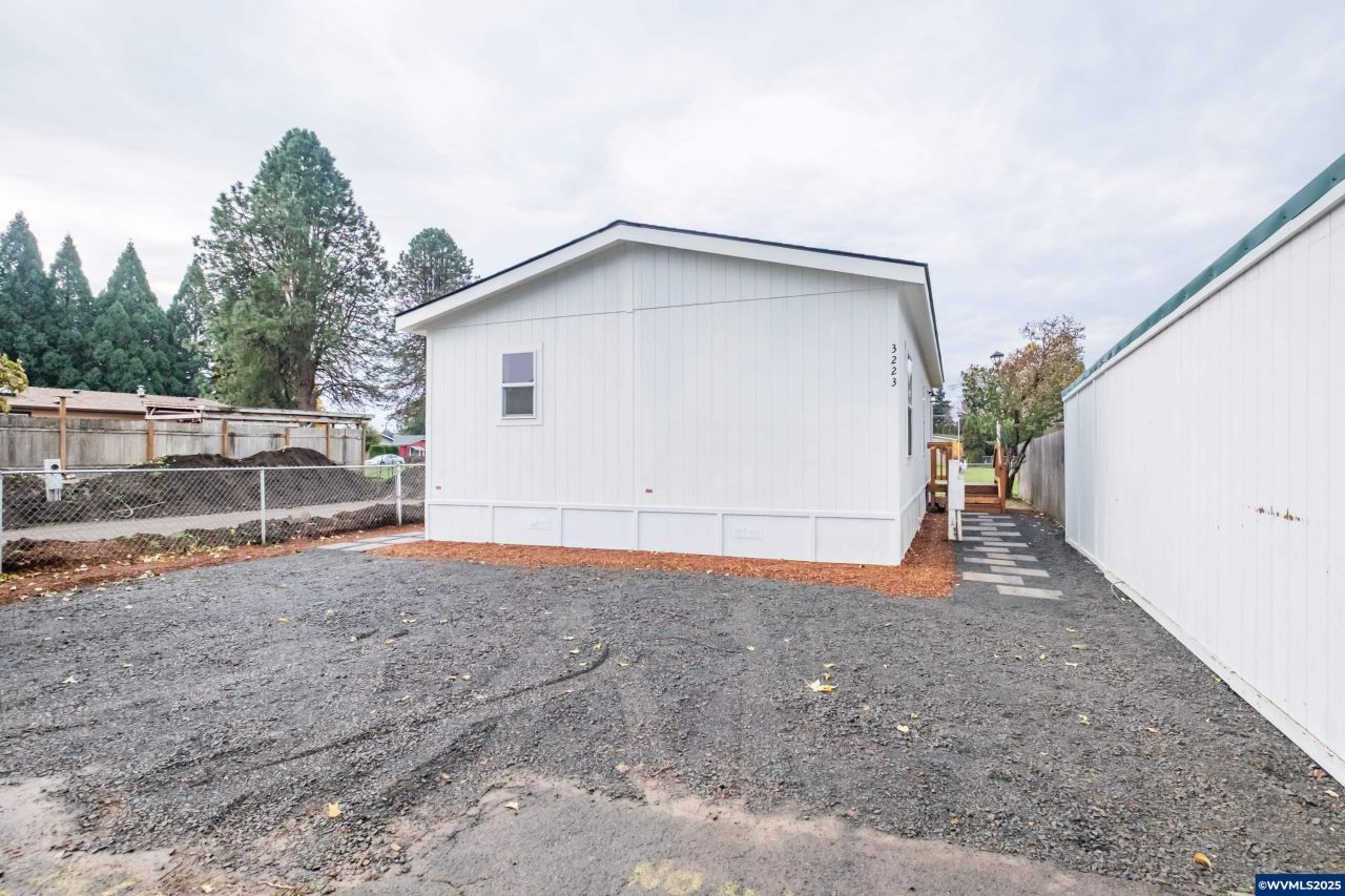 Affordable living in this brand new 3 bedroom, 2 bathroom home on the outskirts of Salem. Offering both comfort and value this single level home is move in ready! It is a great option for a range of buyers, whether it is your first home, last home, or a second home. You will not find a smarter or more affordable choice. Unlike many manufactured communities, this sale includes both the home and the land, so no space rent or long term lease to worry about. It is an excellent choice for a low maintenance lifestyle. The home features a modern open concept layout with a spacious and beautifully finished kitchen. High ceilings and thoughtfully placed windows fill the space with natural light, creating a warm and inviting atmosphere. The private primary suite offers a walk in closet and a full bath, providing both comfort and convenience. Two additional bedrooms offer flexibility for guests, hobbies, or a home office, while the second bathroom includes a tub and shower combination for versatility. Enjoy peace of mind with everything brand new, from the roof, siding, and windows to the furnace and finishes throughout. Spend more time living and less time maintaining. Outside, you will find space to garden, relax, or simply take in the peaceful surroundings. This lot features one of the best views in the community, backing up to a large green space. The community offers expansive green areas, walking paths, a clubhouse, pool, and RV or boat parking, all for an unbeatable HOA of only 60 dollars per month, which even covers your water bill. With low county taxes and full ownership of both the home and the land, this is one of the smartest and most affordable paths to homeownership in the Salem area. Whether you are settling down, scaling back, or seeking an affordable base for Oregon adventures, this brand new home delivers modern comfort at an incredible value!
