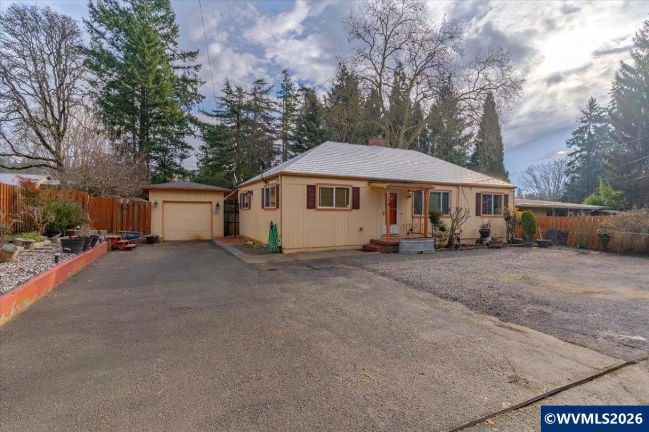 Cute cottage with hardwood floors and a cozy wood burning fireplace. Currently a large 1 bedroom in the main house, easy potential to enclose room off dinning rm for a second bedroom. Main level has 2 full baths and laundry, basement has an additional bath, laundry and storage. ADU behind garage is 696 1 bedroom, garage is 424 sf studio. Large fenced yard, covered patio, plenty of parking. Excellent rental potential or dual living. Excellent location to Beaverton or downtown Portland. Nearby shopping. unique property. Mian house has 1 large bedroom, easy potential to make it a 2 bedroom if needed, off the dinning area, 3 full baths. 2 laundry hook ups. detached 424 sf studio and a 696 sf 1 bedroom apt. Large yard and plenty of parking.Sentrilock box. Keys to apt/studio are on kit counter