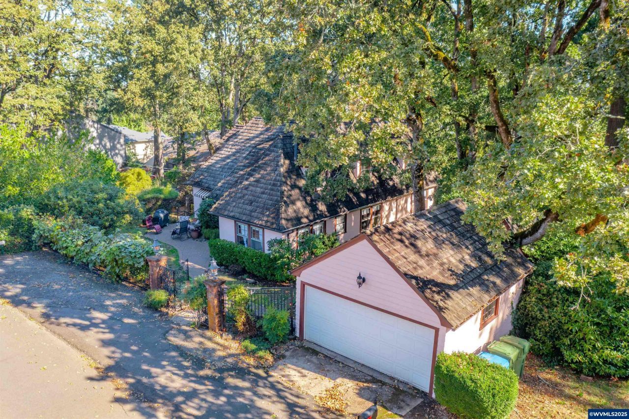 Charming 1918 French country farmhouse on half acre wooded lot right in the city. Located on dead end street, walking distance to school/park. Turn key dual living with 5 bedrooms, 3 bathrooms, formal and informal dining areas, detached double garage. Tastefully updated kitchen with solid surface counter, farmhouse sink, and French doors that open onto patio. Clear days provide peek-a-boo views of Mt Hood and Mt Jefferson. Arched doorways, built ins, wood burning fireplace with Batchelder tile, and Japanese soaker tub. Despite updates, historical charm has been preserved.