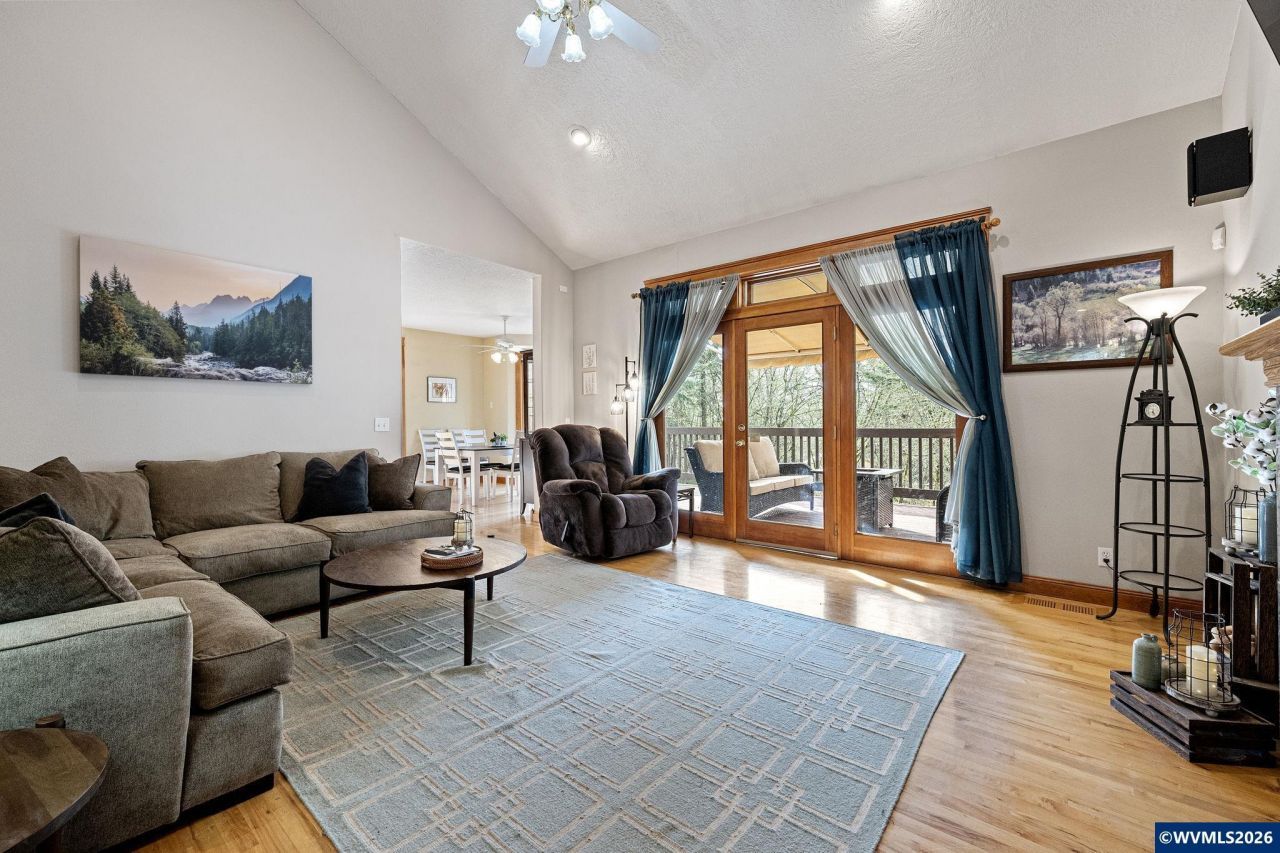 Exquisite custom-built home nestled on a private wooded 6.65 acres. Enjoy the tranquil views from your covered front porch, overlooking the waterfall & pond while enjoying some frequent visiting turkey or deer. This home & property boasts an abundance of opportunities and is currently set up for separate living. The main level is adorned with beautiful hardwood floors & solid oak accents. From the entry you are greeted with French doors leading to an office/den or Formal Dining. The living room has soaring vaulted ceilings, double side fireplace & French doors to the wraparound composite deck that features 2 retractable awnings & overlooks the backyard. Kitchen opens to dining area, and features eating bar, stainless steel dishwasher & refrigerator (included) an abundance of storage w/appliance garage, pull-out shelving and some butcher block counter tops. The dining area has additional French doors to covered deck w/skylights. The spacious primary suite is kept cozy with double sided fireplace, French Doors to deck, walk in closet, spacious bath, with two vanities, jetted tub & walk in shower. Upstairs loft overlooks living room w/ built-ins, plus two bedrooms & bath. Lower level has 2 more bedrooms, full bath, kitchen, large family/dining room w/propane stove & French Doors. This space can be part of the main home or separate w/exterior entrance & own carport. Additionally, home has central vac, utility rm w/sink & built in ironing board, plus 3 yr old HVAC???s 3 ½ ton & a 2 ½ ton systems, 2 newer water heaters. Huge pantry/cold room or storage. Property is gated w/large shop/studio w/2 attached storage spaces & 3rd separate storage/potting shed or child???s playhouse, 2 separate fenced garden spaces. Property previously had a manufactured home towards front of property w/2nd septic, electricity, etc., & firepit great for RVing guests. Buyer to do own due diligence re: adding a 2nd dwelling or hardship. Looking for your own piece of paradise? Look no further, call your favorite agent today to schedule your private viewing! To view alternate Virtual Tour, please go to 1
