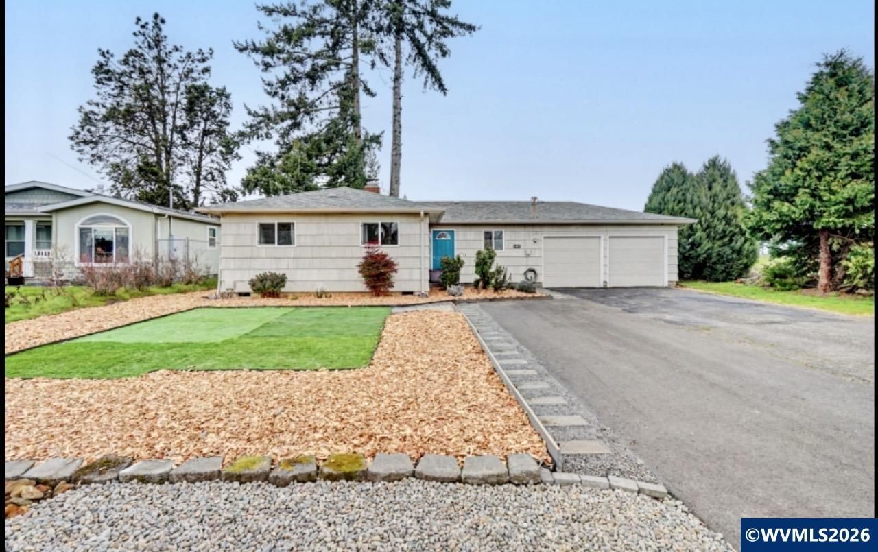 This Charming Ranch is settled on a .23-acre lot w/farmland & mtn range views,all just 6 min to I-5 & Keizer Station for easy commuting, shopping & dining. Best of both worlds! Inside the wood flooring and wood burning fireplace create a warm & cozy atmosphere. 2 Car Garage,RV hookup & Parking, and extra parking!