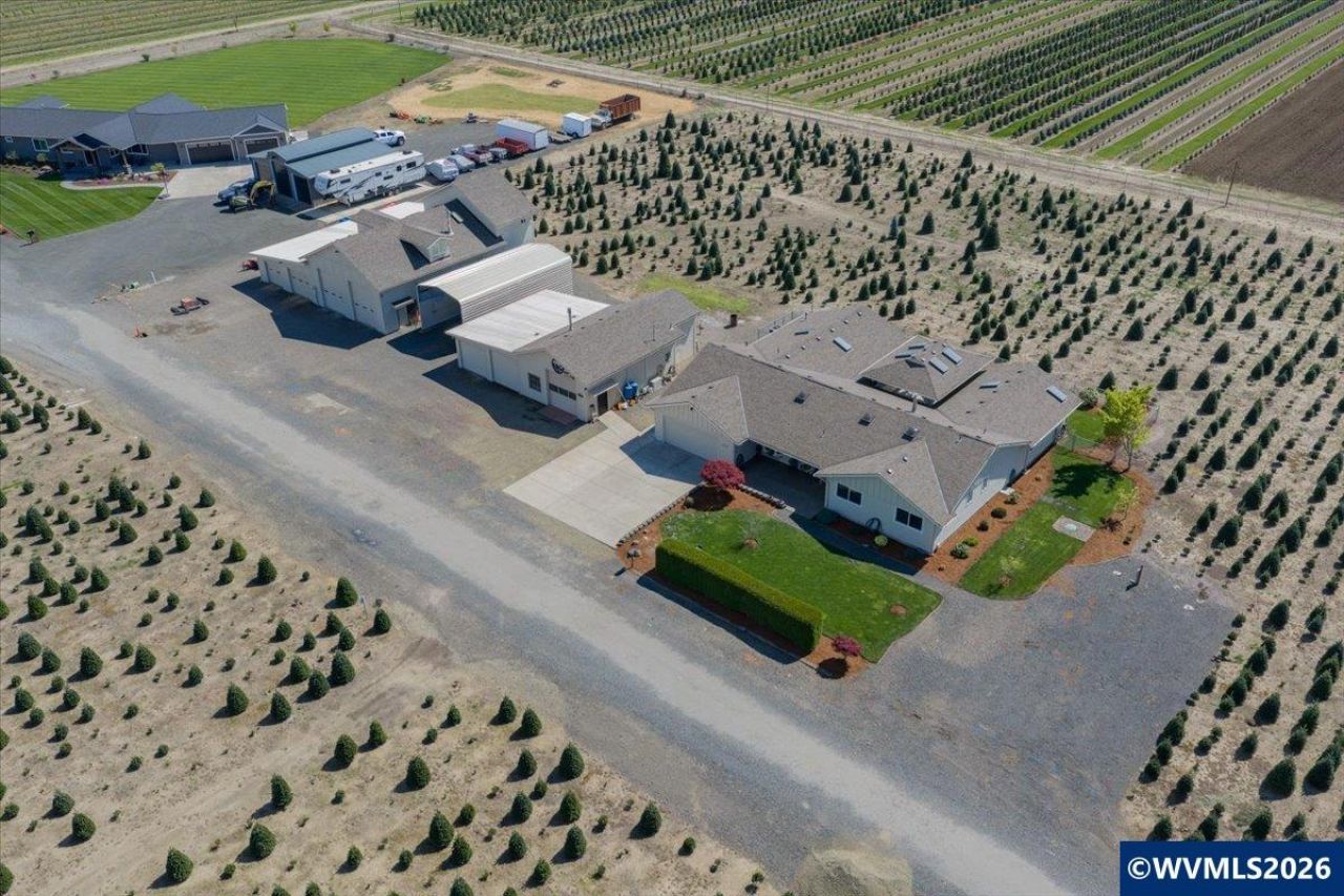 Who remembers Palmer's Tree Farm? Just over 9.03 acres of usable, income-producing agricultural land featuring established wholesale Christmas Trees on 2 parcels. Single level home of 2998 sq. ft. offers the option for dual living- handicap accessible. In addition, lovely kitchen w/ island, two pellet stoves, patio, & sprinkler system. Four expansive shops provide ample space for equipment, RV storage, or hobbies! Versatile property w/ room to grow, U-Cut business, invest, or enjoy peaceful country living.