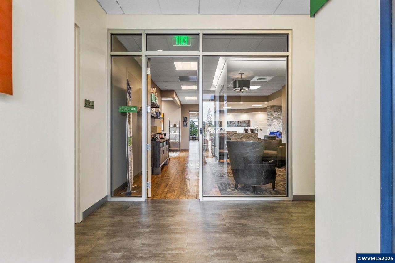 With a spectacular 4th Floor Canopy Level location, enjoying 360-degree views and directly over Pringle Creek, Suite 400 is a beautifully finished, turn-key medical office space. Featuring 10??? ceilings, incredible views, fresh air, abundant natural light and privacy. The suite is outfitted with a spacious waiting area, a large, multi-station reception, seven (7) exam/treatment rooms, six (6) private offices, large kitchen/break room, two (2) storage rooms and one (1) private (in suite) restroom. Suitable for most medical practitioners or conversion to a non-medical professional office.