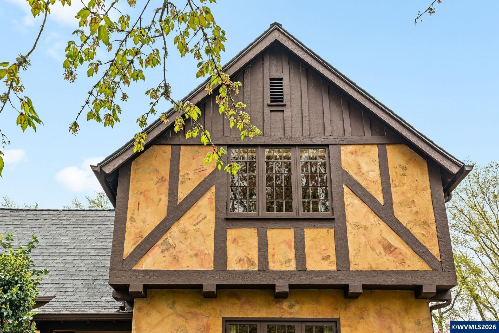 Immaculate Tudor Revival style historic home with reduced tax assessment. Beautifully restored home with high-end period details throughout. Large living room with timeless features including hardwood floors, multi-paned casement windows, exposed beam, extensive wood trim, doors & accents. Custom kitchen w/SS appliances, deep sink, granite, tile, gas range, center island & custom extras. Built-in corner cabinets & window seat, bedrooms include built-in drawers. Beautifully crafted luxury bathrooms. High functioning basement w/extra storage. Single car garage w/electronic doors (fits SUV). Pergola type seating area & specialized shed in fenced yard. Fenced double city corner lot.