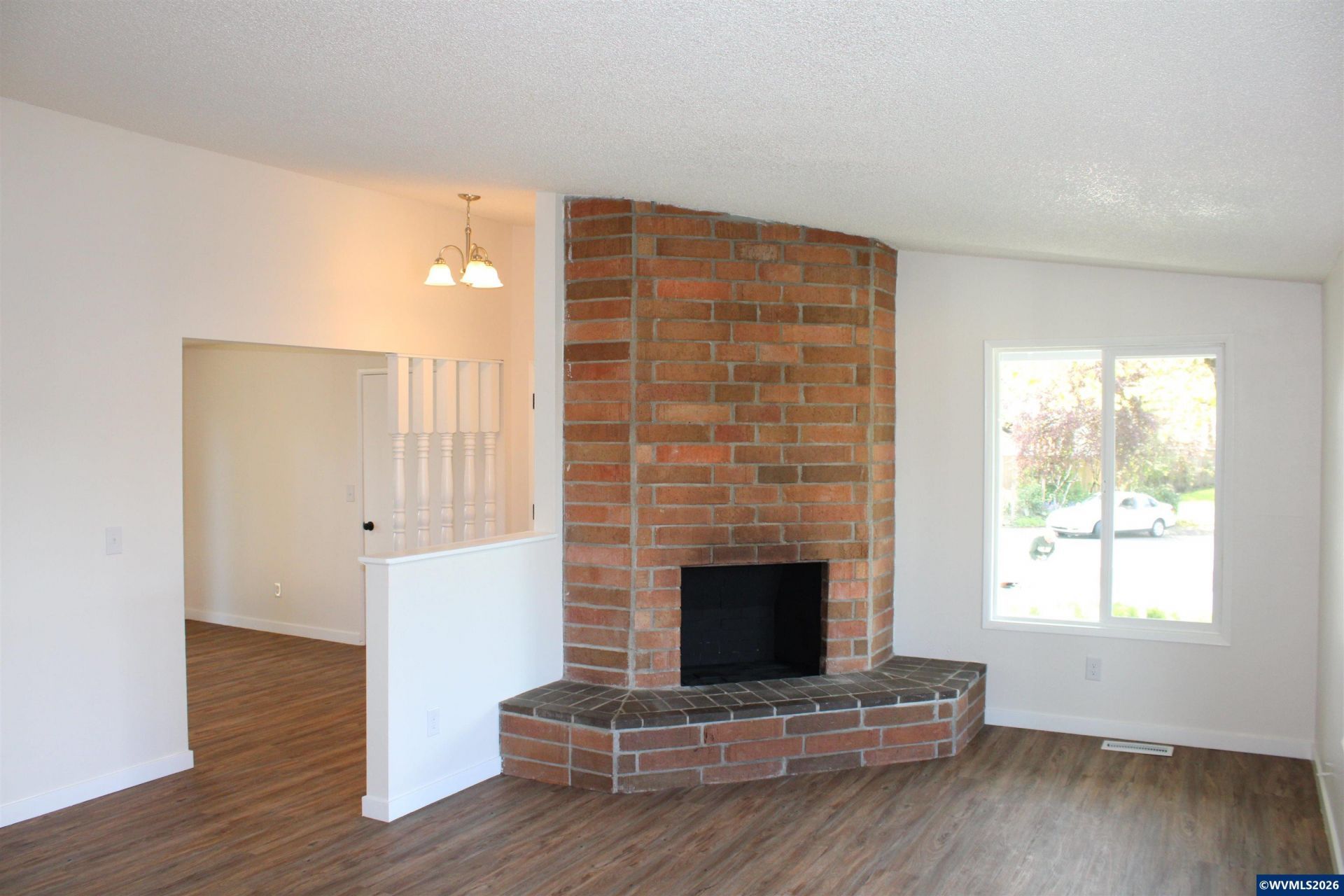 Updated with new roof, windows, paint in & out, floor coverings, solid surface kitchen counters, appliances & more. Home has a nice floorplan with a vaulted living room ceiling & a nice corner brick fireplace. Bath has access to primary bedroom and hall. Garage is oversize & has a man door to the fenced backyard. Great neighborhood 2 blocks from LBCC's disc golf course. Move-in ready.