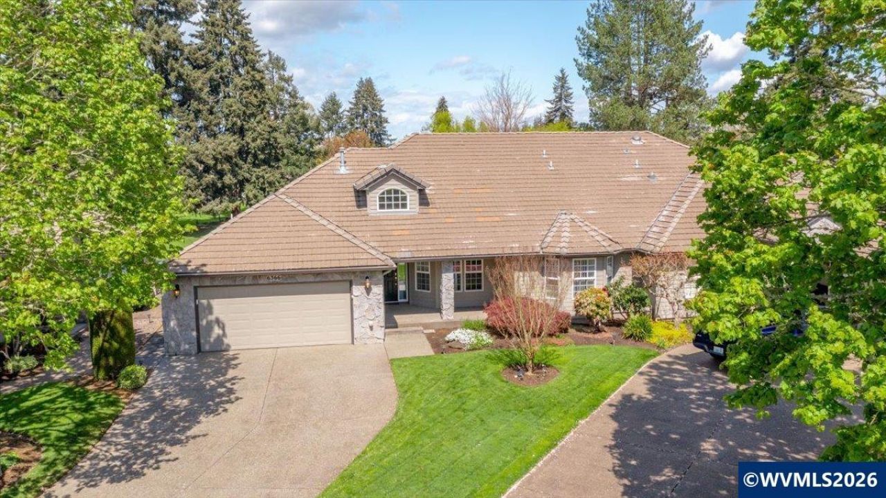 Open house parking: on a main st- do NOT block driveways. Within desirable McNary Estates, this well-maintained single-level home features 2 beds, 2 baths, and an office. Vaulted ceilings highlight the spacious living room filled with natural light, while the beautiful kitchen is complemented by a dining area and cozy nook. The large primary suite includes a remodeled bath and ample space. Enjoy peaceful pond and fountain views from the back patio. Inviting entryway. Enter community from River Rd.