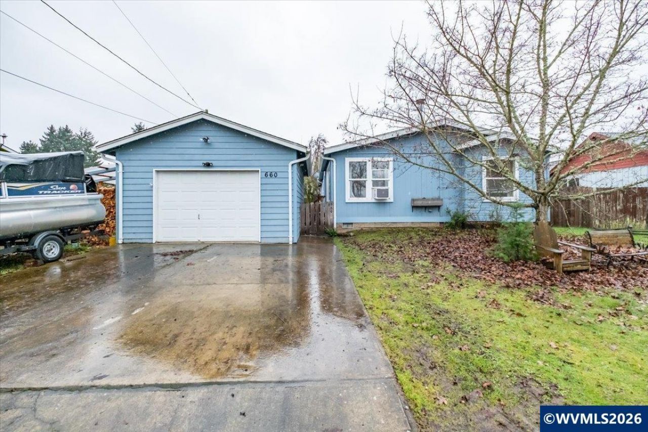 Hard to find in-town property offering comfort, efficiency, and everyday functionality on a manageable 0.14 acre lot! This well-maintained home features easy main level living with a combined living and dining area designed for practical flow and entertaining. The kitchen includes essential conveniences with range, dishwasher, and the laundry/mudroom just off the kitchen. Down the hall you'll find a nicely sized Primary suite with a large walk in closet and ensuite bathroom. Outside you'll find a single detached garage that provides great storage, parking, or hobby space. The fully fenced backyard comes equipped with an additional shed and a covered patio. If you are looking for low-maintenance living close to town amenities this could be the one for you. To view alternate Virtual Tour, please go to 1