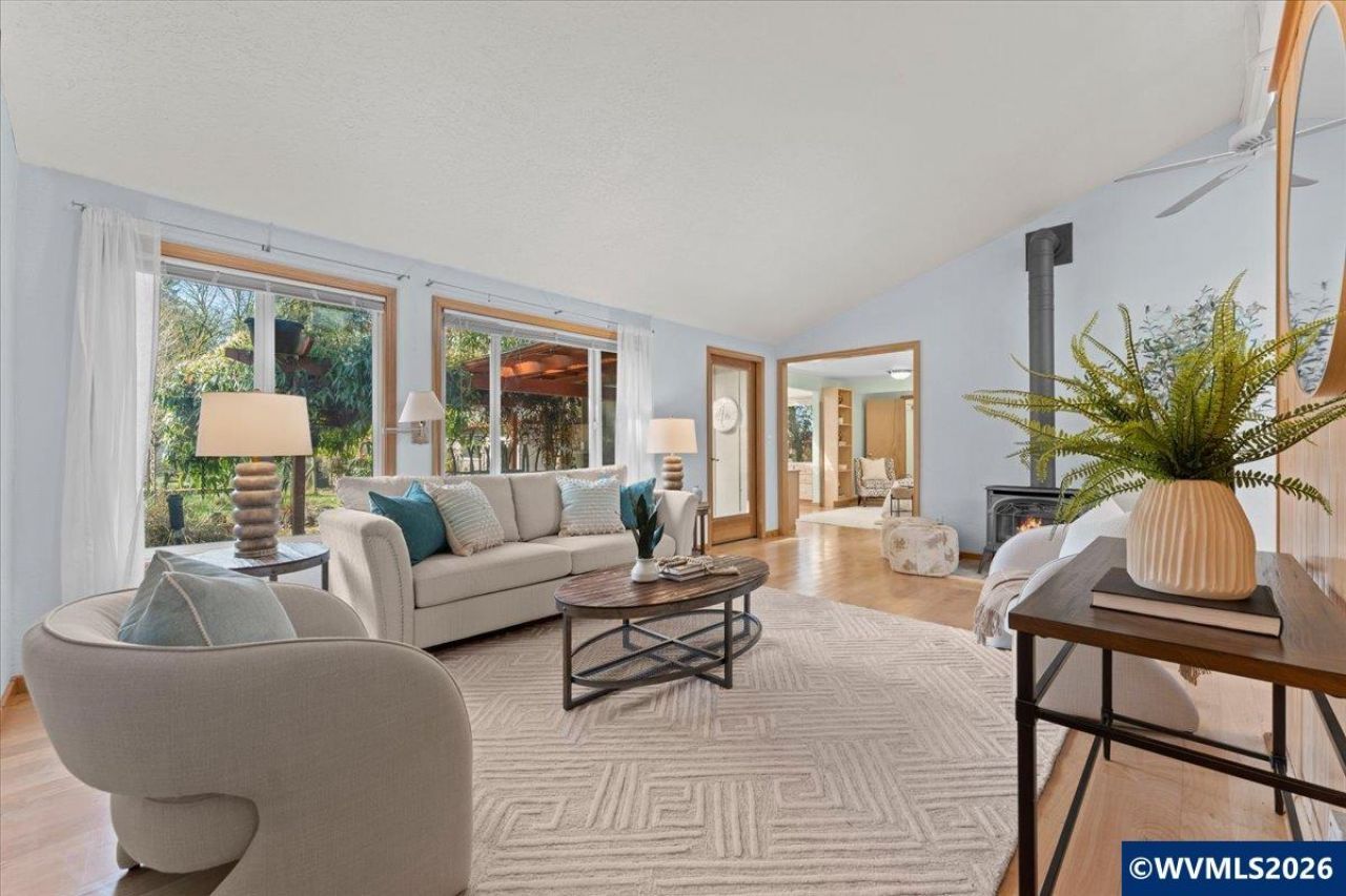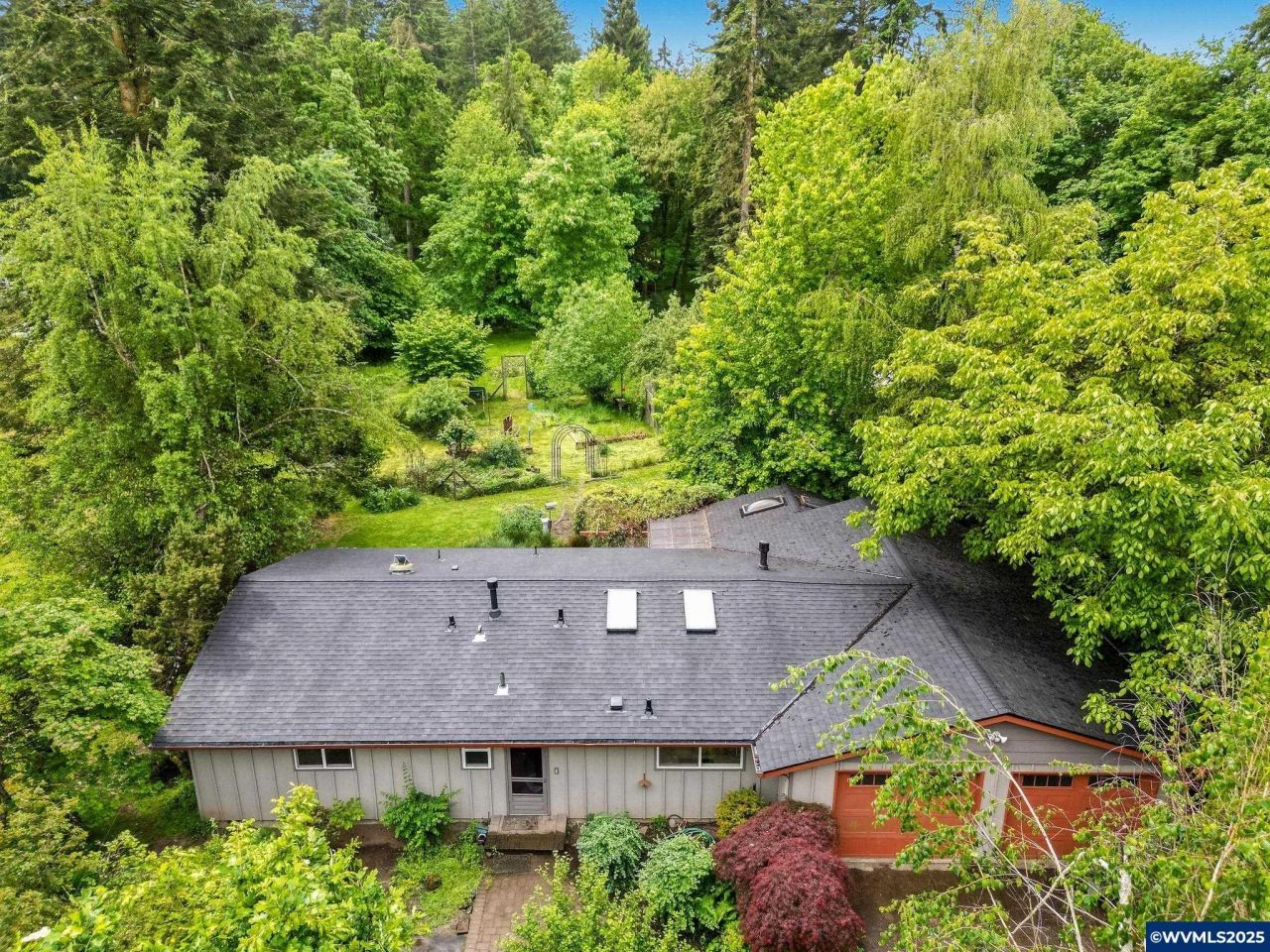 Come call this delightful house tucked away on over 4 acres in Brooks with easy access to the highway and all your needed amenities your home! This tranquil 1,337sqft space has two bedrooms and a bonus room for added flexibility with ample storage. The primary room has an attached half bath. Large skylights welcome the morning sun into the large, vaulted-ceiling kitchen. With a gas fireplace and central air you're sure to be cozy all year 'round. Save time and energy knowing the main bathroom's bathtub is on a grey water system that waters the outside landscape just outside! Step out onto the back patio and enjoy all the beautiful views with raised garden beds, flower beds and the enchanting trees that fill the back of the property. There is plenty of storage between the large attached 2-car garage and another shed. With a separate workshop that has electrical you can work on all your hobbies and projects. New roof was installed in 2025. The wooded area of this property is in a nature conservation.