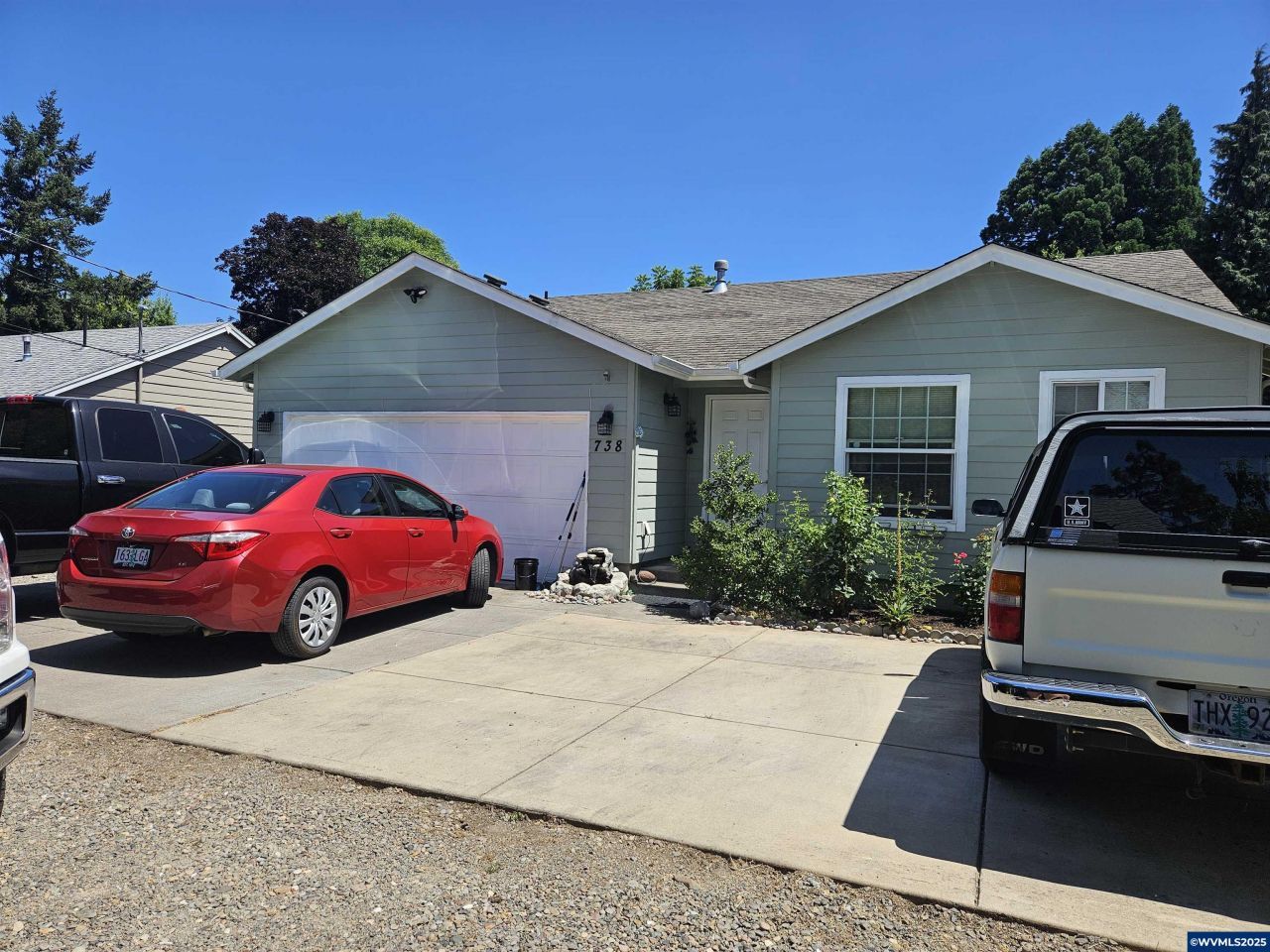 Well cared for Home situated at the end of a Private lane. Vaulted Living ceiling, Master bedroom separate from 2 other bedrooms, open kitchen and dining area, fenced yard, 2 A/C units, 10x10 tool shed, washer & dryer included, fruit trees are, pear, peaches, plums, Raspberry, blueberries and grapes. Covered back patio for relaxing, master bedroom with large walk-in closet, security cameras stays with property, double car garage. All fenced in yard.