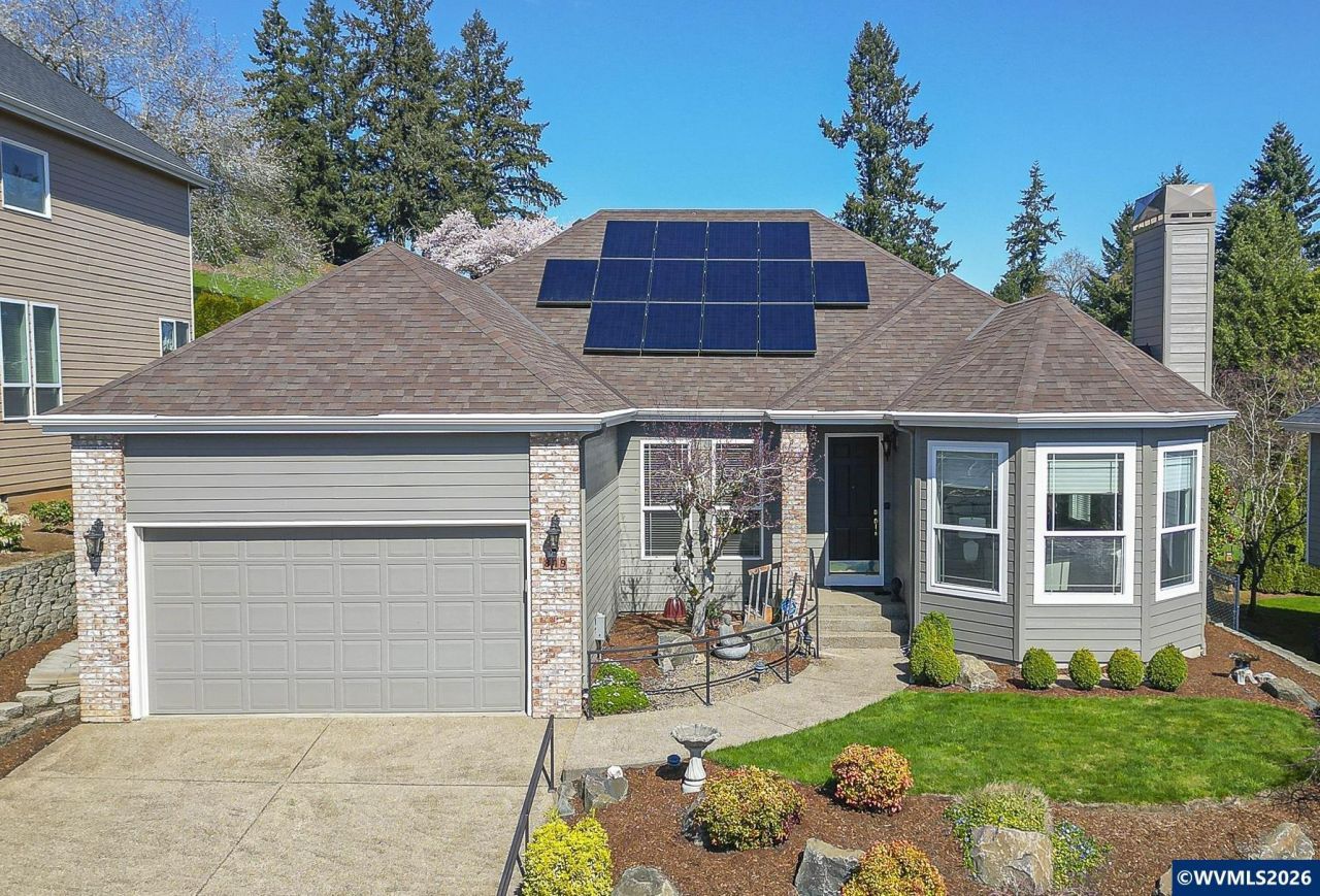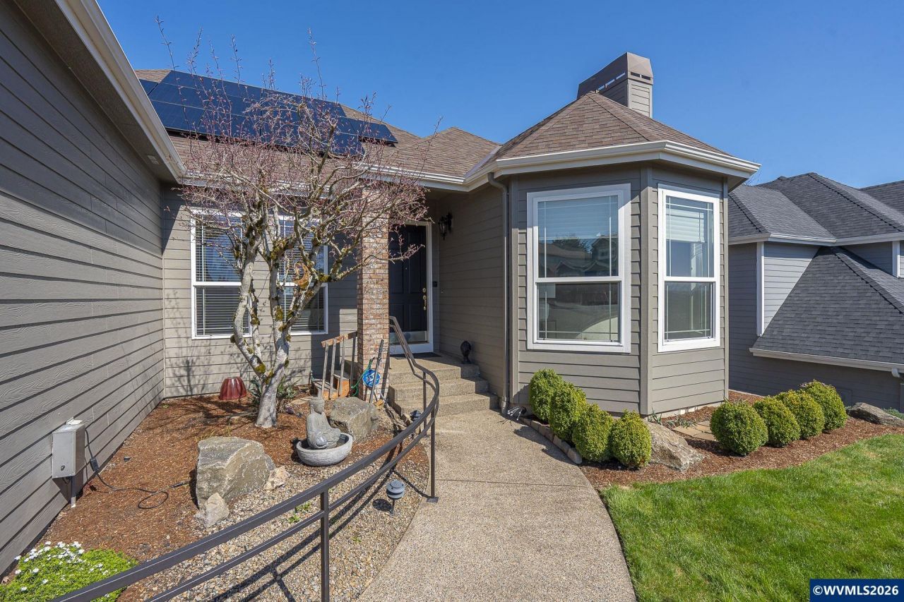 Welcome to single-level living in Creekside Estates with mountain views. This home impresses w/vaulted ceilings, 9-ft doors, cozy gas fireplace in living room & a kitchen/family room. The expansive private deck overlooks open green space with yard that is fully fenced. The primary suite is a peaceful retreat with large walk-in closet and newly remodeled en-suite bath. New 2025 furnace/heat pump and 3 large Anderson windows along with paid-for solar panels ensure low utility bills. Join Creekside Estates' premier social club; offering championship golf, a pool, restaurant with a view, pickleball, and a gym. Resort-style living, every day.