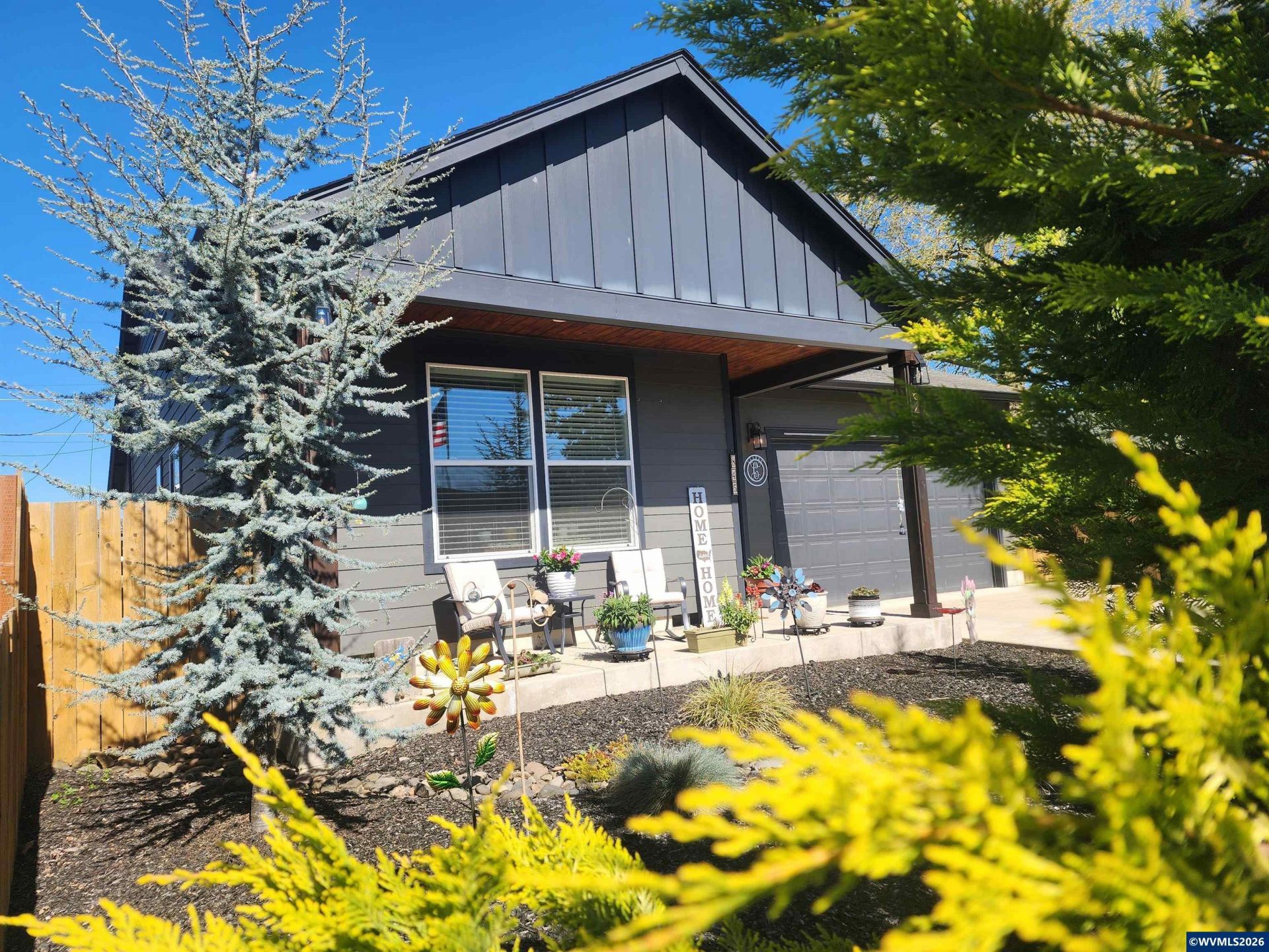 Lovely low maintenance home with all the features and no CC&Rs. Vaulted ceilings, great room with gas fireplace, Primary bedroom located away from the other two rooms and includes large walk in closet and bath. Large kitchen with eating bar, quality cabinets and all the kitchen appliances stay! Walk through the exterior door from the dining area onto the covered porch in the fenced manicured yard. Bonuses include: garden shed, gutter guards and room to garden through the gate in the back.