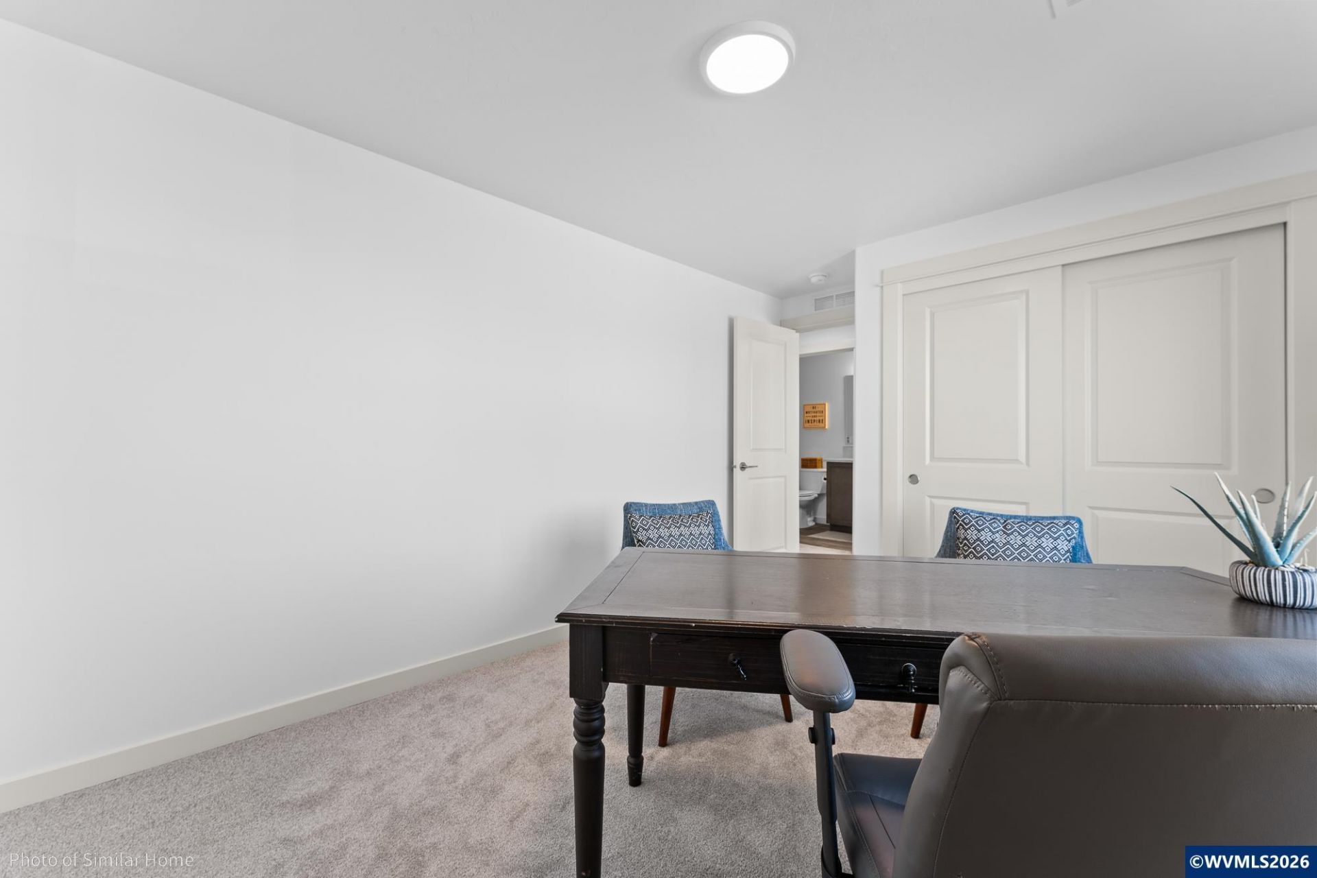 The 1573 square foot Harrison is an intelligently designed two-story home that lives larger than most mid-sized plans. The first floor is home to a spacious main suite with an ensuite bath and dual vanity. The open living room is adjoined by the dining room and kitchen, which boasts ample counter space and cupboard storage. Near the entry is a convenient powder room for guests. Upstairs, two sizeable bedrooms offer large closets and share the second full bathroom.This particular home is on a sizeable lot with an extended covered back porch. This home includes landscaping front and back, in-ground sprinklers, full HVAC, quartz countertops, upgraded flooring throughout the lower level, a 4ft garage extension, and more!