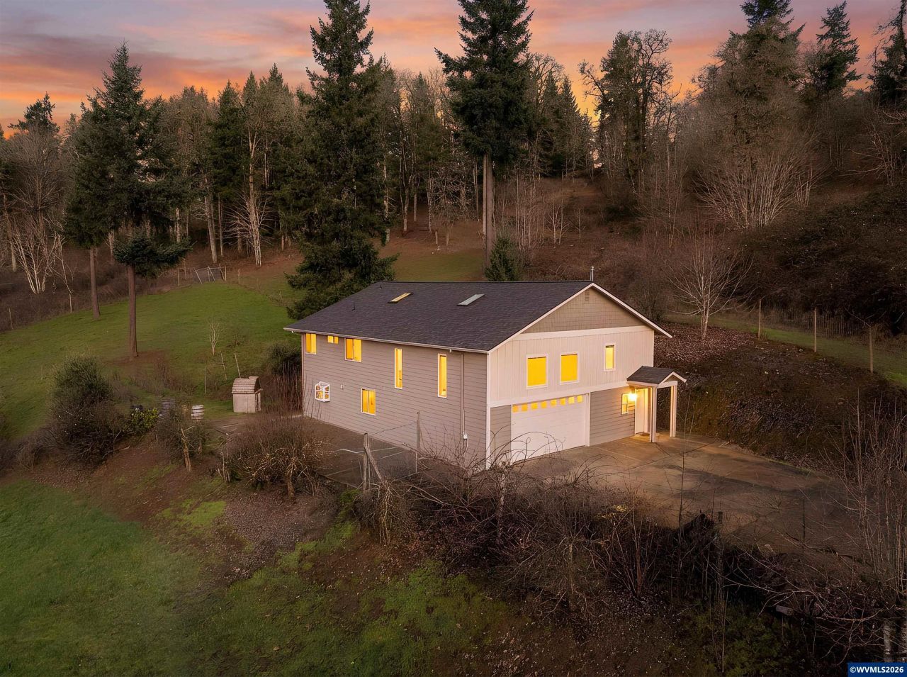Charming Country Retreat! Discover the perfect blend of modern comfort & country charm in this updated home. Nestled in the scenic Eola-Amity Hills AVA???part of Willamette Valley wine country. This serene property offers the peace of rural living. NEW ROOF and freshly painted inside and out! The driveway is 1500sf of poured concrete along with concrete paths on both sides. The home boasts stunning Eastern Hard Rock maple floors, base & trim. The kitchen features SS appliances, a garden window, California granite countertops, and an eating bar. Both bathrooms have walk-in showers, and the primary bath features a jetted garden tub and double sinks. Enjoy year-round comfort with a ductless mini-split system that provides efficient heating and A/C for the entire home, complemented by a cozy wood-burning stove. All new fixtures, toilets, lighting, and brand-new carpeting add to the home???s turn-key appeal. The expansive primary suite includes a large walk-in closet & a spa-like ensuite. A flexible upstairs bonus room offers endless possibilities. A tilled garden & an impressive array of fruit trees. 2,600-gallon tank supports irrigation. The 500sf garage features skylights, 16 ft. ceiling with potential for added living space above. The attic is fully insulated (R-48) & the well system includes an expansion tank. Two dedicated propane tanks power a 28KW whole-house generator for peace of mind. A rare opportunity to own a thoughtfully updated, self-sufficient home in one of Oregon's most desirable wine regions. Seller will carry contract.